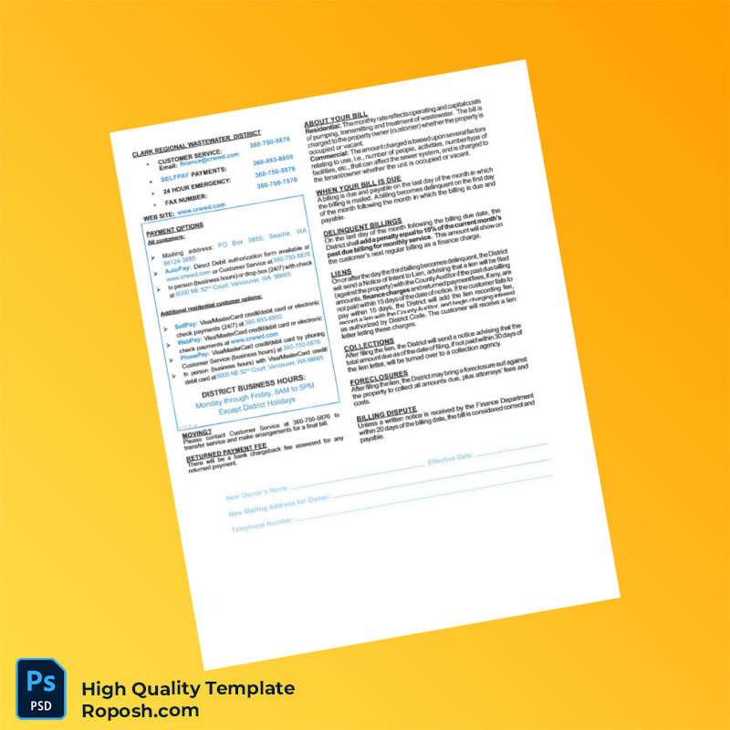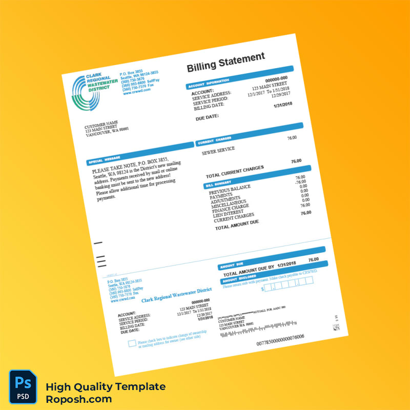 USA Clark Regional Wastewater District Editable Utility Bill Template