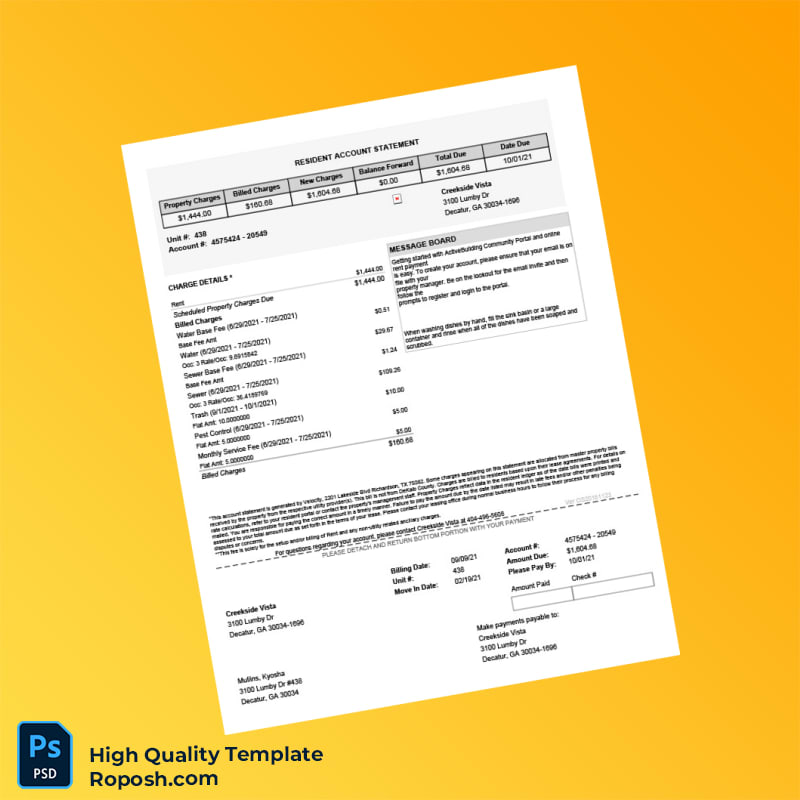 USA Creekside Vista Editable Utility Billing Statement Template