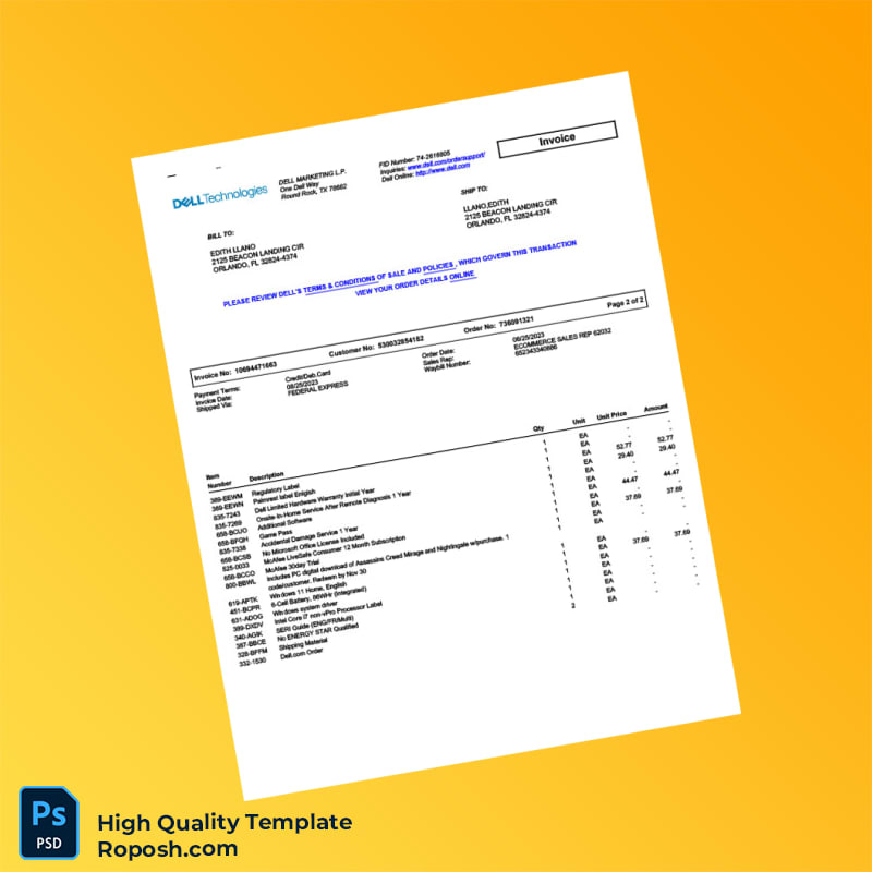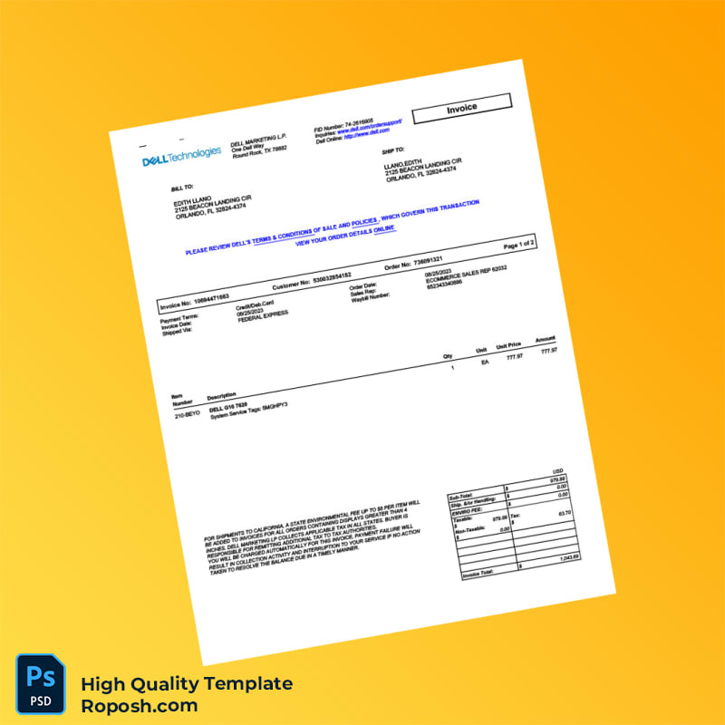 USA Dell Marketing L P Invoice Template in Word and PDF Formats