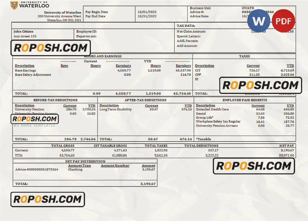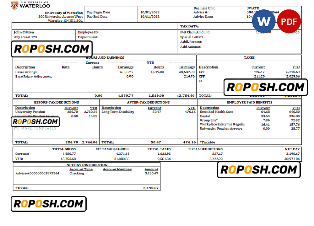 Grab now fully editable USA educational company employee sheet Template from our website roposh and put your own info to create a copy of USA educational company employee sheet   template Word and ready your own novelty documents. It’ll be so beneficial if your pay stub is expired, stolen or not available. We also have word invoice template, ID Card psd template, Bank Statement psd template, drivers license psd template, Utility bill psd template & pay stub.