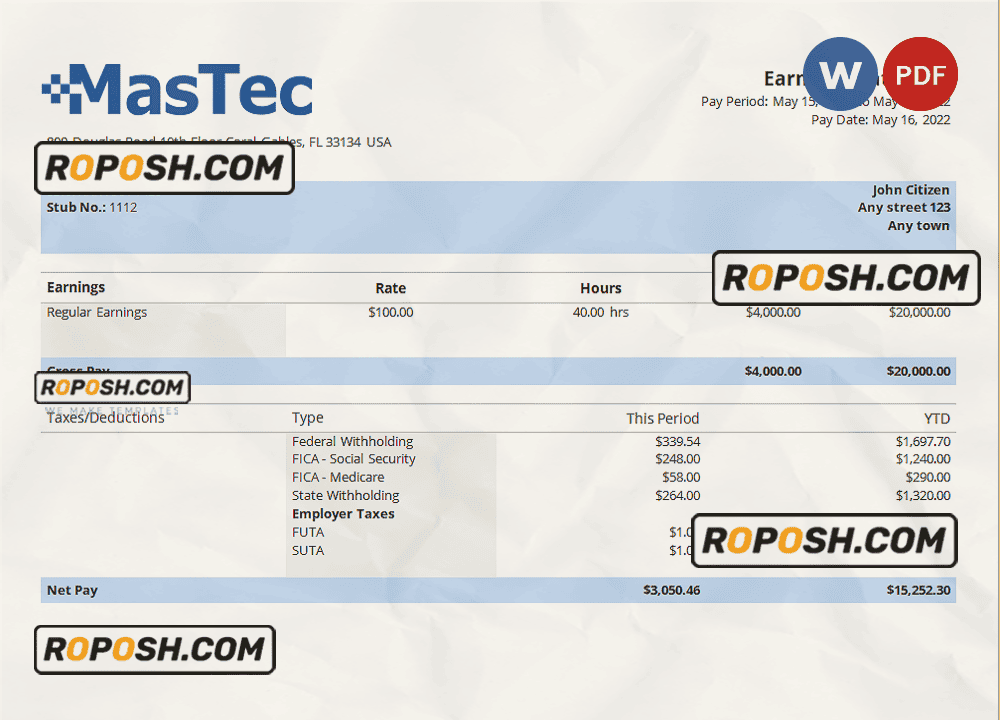 Grab now fully editable USA engineering company employee sheet Template from our website roposh and put your own info to create a copy of USA engineering company employee sheet template Word and ready your own novelty documents. It’ll be so beneficial if your pay stub is expired, stolen or not available. We also have word invoice template, ID Card psd template, Bank Statement psd template, drivers license psd template, Utility bill psd template & pay stub.