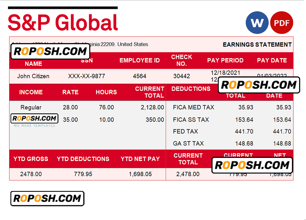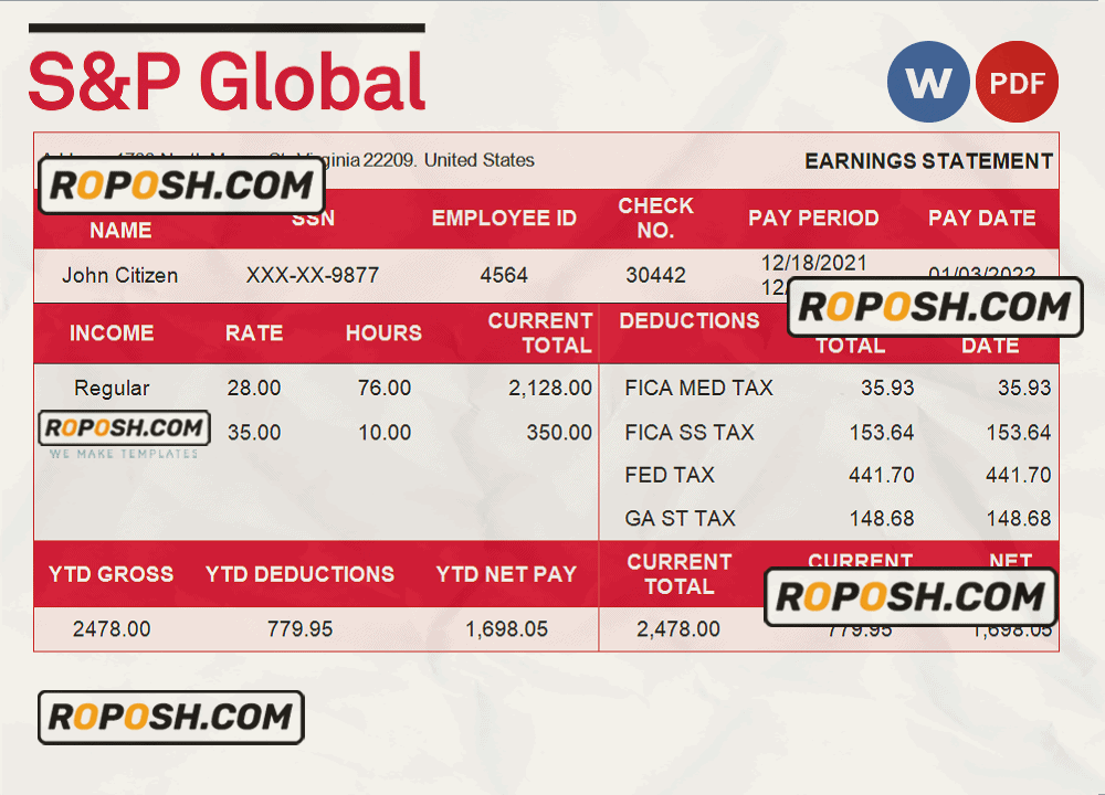 Grab now fully editable USA financial company earning statement Template from our website roposh and put your own info to create a copy of USA financial company earning statement   template Word and ready your own novelty documents. It’ll be so beneficial if your pay stub is expired, stolen or not available. We also have word invoice template, ID Card psd template, Bank Statement psd template, drivers license psd template, Utility bill psd template & pay stub.
