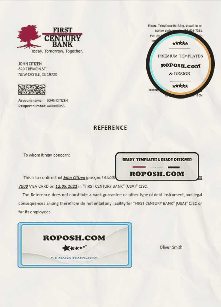 USA First Century Bank bank account closure reference letter template in Word and PDF format