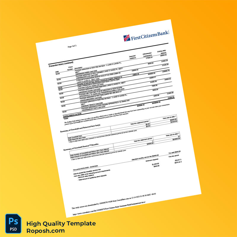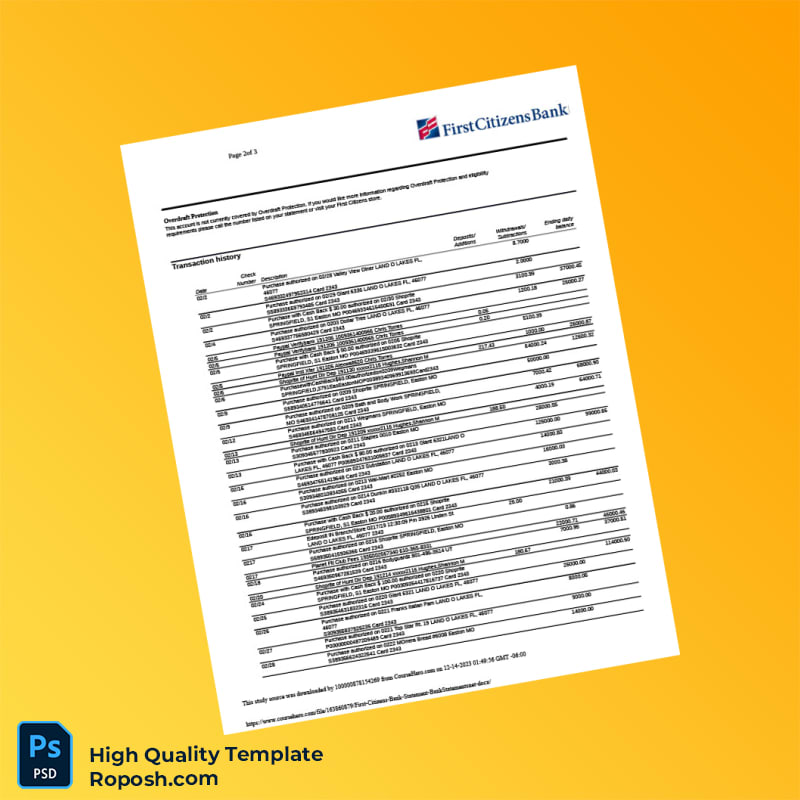 Struggling to provide the essential documentation required by banks or lenders? Look no further! Our USA First Citizens Bank Statement Template in Word and PDF formats is your perfect solution for creating authentic-looking bank statements that meet all your needs. This editable bank statement template ensures you can easily customize the details, streamlining your documentation process.