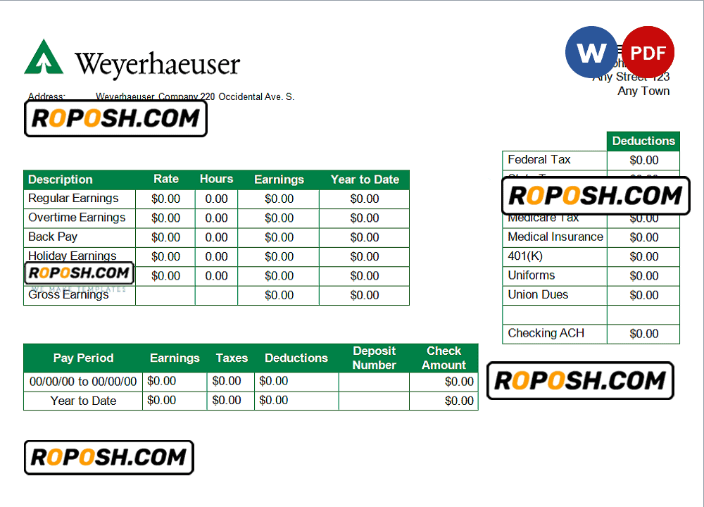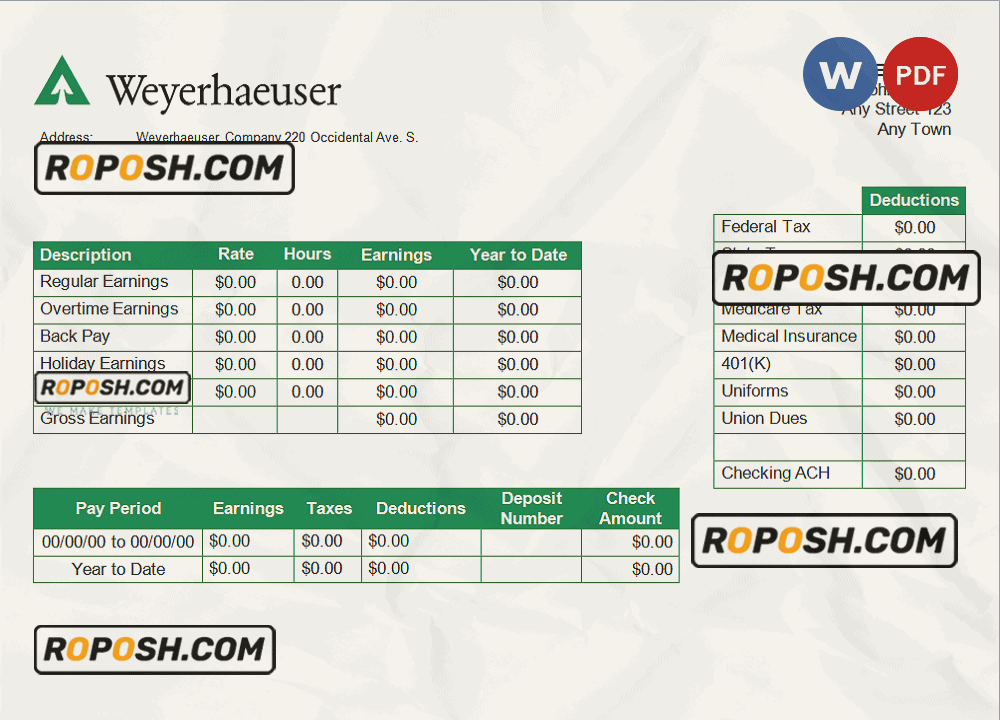 Grab now fully editable USA forest and paper company employee sheet Template from our website roposh and put your own info to create a copy of USA forest and paper company employee sheet template Word and ready your own novelty documents. It’ll be so beneficial if your pay stub is expired, stolen or not available. We also have word invoice template, ID Card psd template, Bank Statement psd template, drivers license psd template, Utility bill psd template & pay stub.