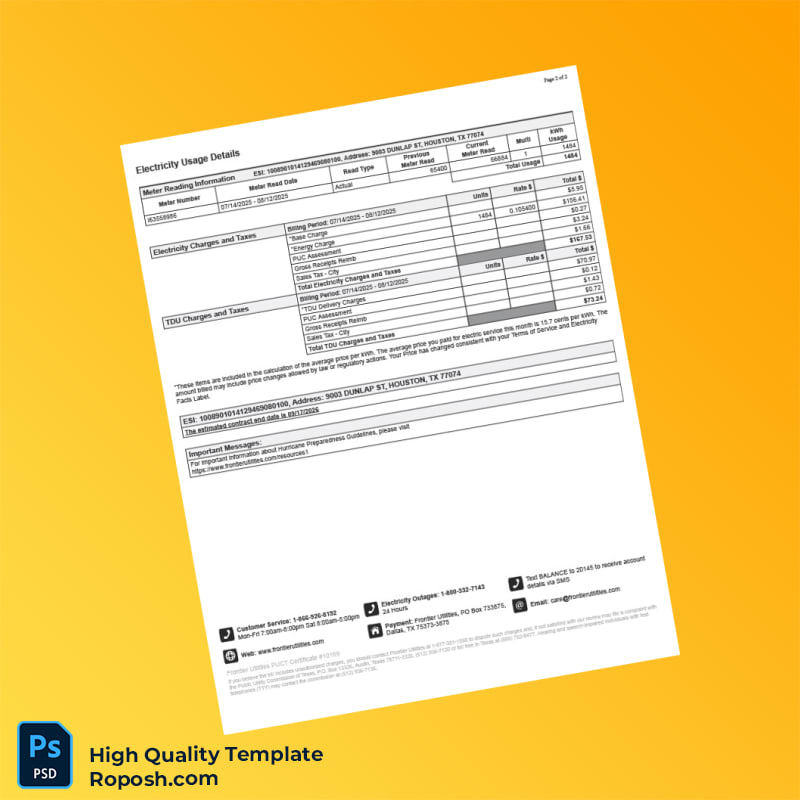 Need a reliable utility bill proof of address template that’s quick and easy to customize? Look no further than the USA Frontier Utilities Editable Utility Bill Template, perfectly designed for professionals who require immediate documentation for various needs such as applications for service or verification purposes.
