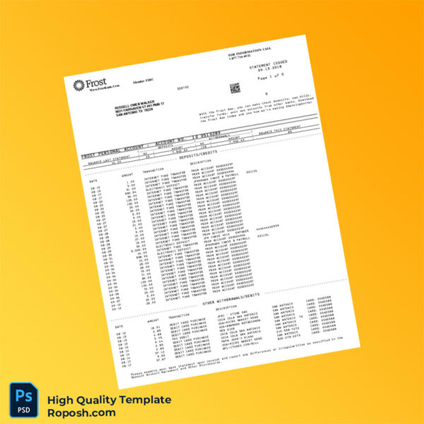 Elevate Your Documents with Our USA Frost Bank Statement Template