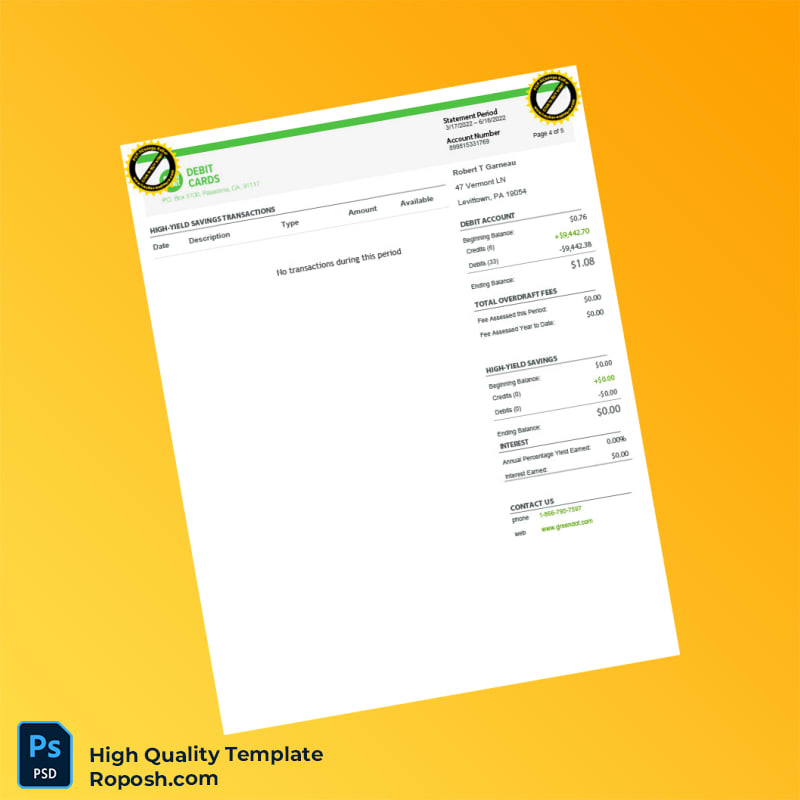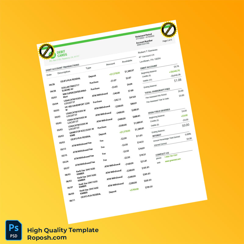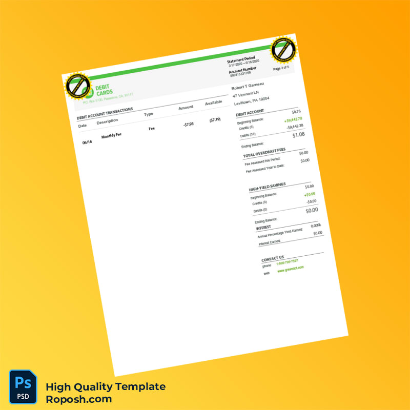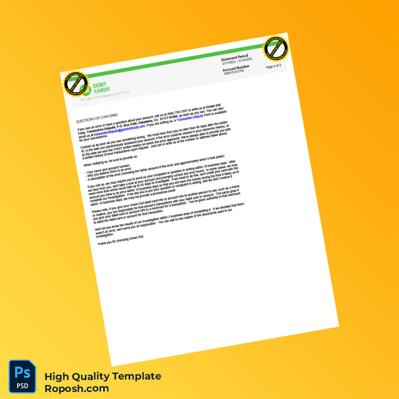 USA Green Dot Bank Statement Template in Word and PDF formats 5 page