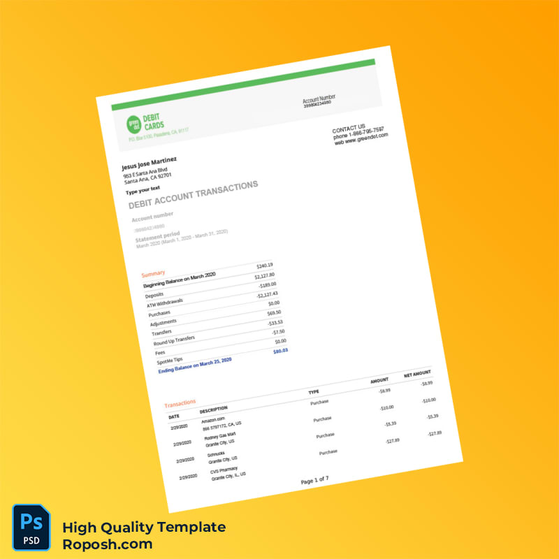 USA Greendot Bank Statement Template in Word and PDF Formats