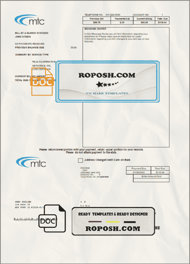 Get your blank USA Illinois MTC utility bill template from Roposh today. Customize it with your information to create a realistic USA Illinois MTC utility bill for proof of address. Ideal for situations where your utility bill is expired, stolen, or unavailable. Explore our range of templates, including passport PSD templates, ID card PSD templates, bank statement PSD templates, driver’s license PSD templates, and utility bill PSD templates.
