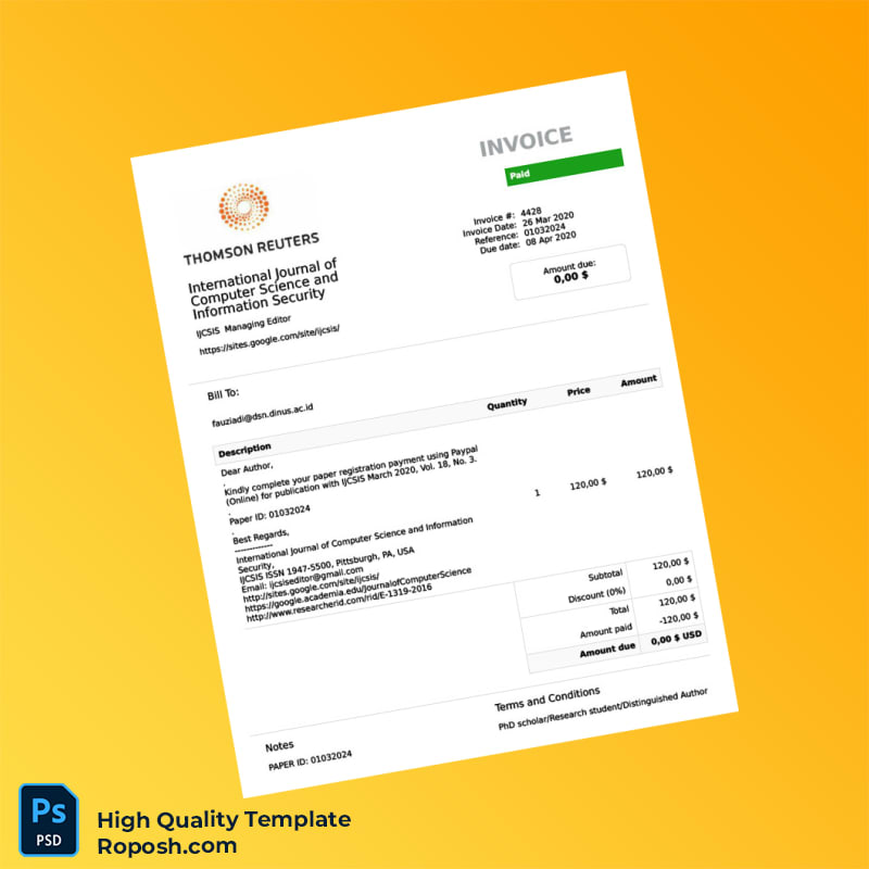 USA International Journal of Computer Science and Information Security Invoice Template in Word and PDF