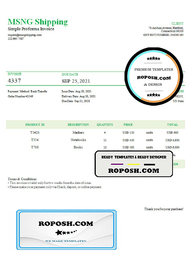 USA MSNG Shipping invoice template in Word and PDF format, fully editable
