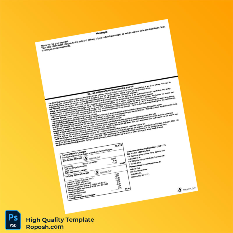 USA National Fuel Gas Distribution Corporation Editable Gas Bill Template in Word and PDF formats 2 page