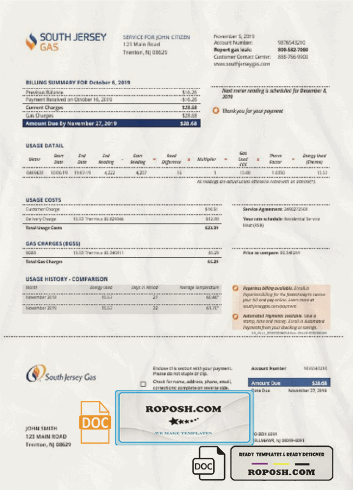 Get your blank USA New Jersey utility bill template from Roposh today. Customize it with your information to create a editable utility bill for proof of address. Ideal for situations where your utility bill is expired, stolen, or unavailable. Explore our other templates, including passport PSD templates, ID card PSD templates, bank statement PSD templates, driver’s license PSD templates, and utility bill PSD templates.
