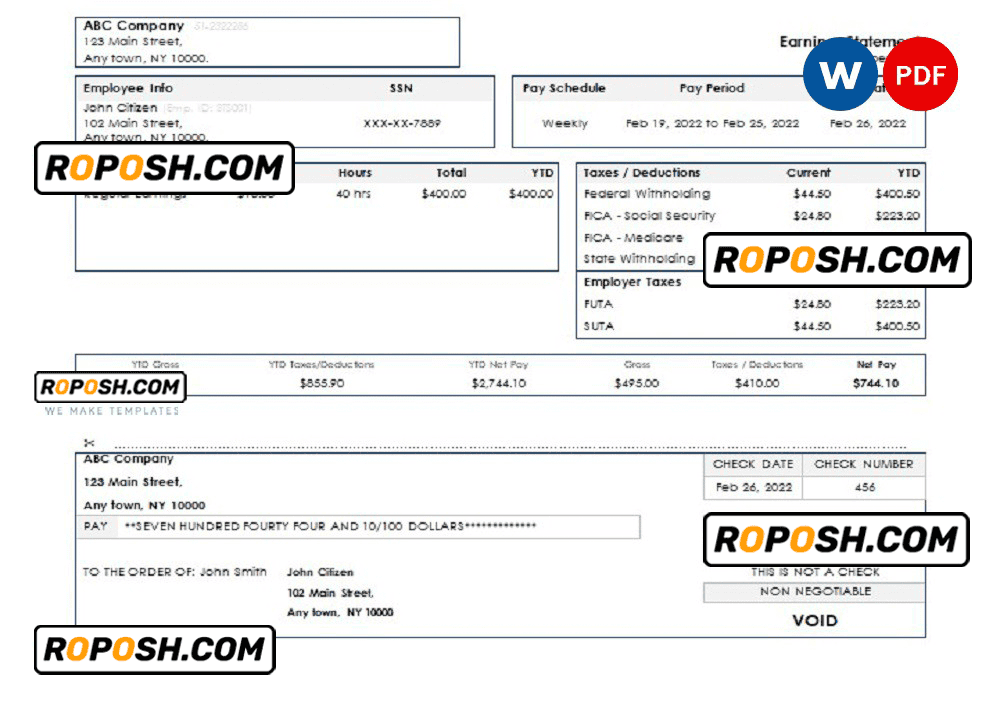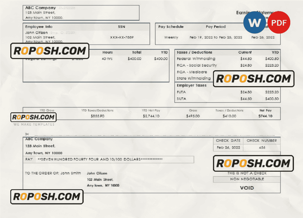 Grab now fully editable USA New York earnings statement Template from our website roposh and put your own info to create a copy of USA New York earnings statement template Word and ready your own novelty documents. It’ll be so beneficial if your pay stub is expired, stolen or not available. We also have word invoice template, ID Card psd template, Bank Statement psd template, drivers license psd template, Utility bill psd template & pay stub.