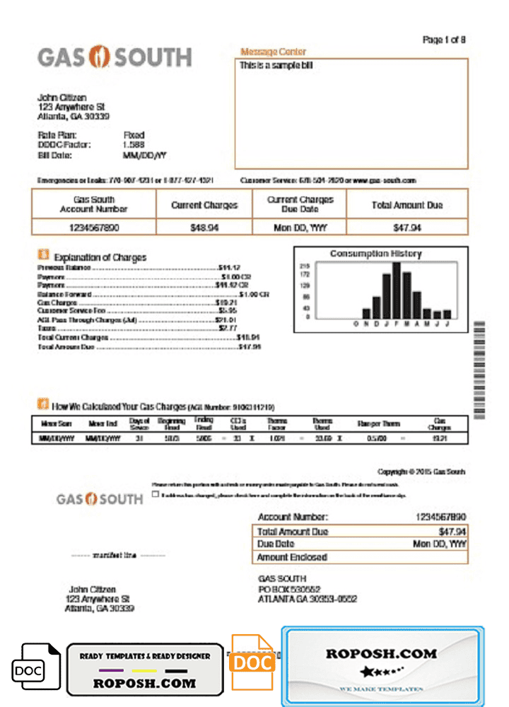 Get your hands on a blank USA New York Gas South utility bill template from our website, Roposh. Customize it with your own information to create a convincing editable utility bill for proof of address. Ideal for situations where your utility bill is expired, stolen, or unavailable. We also offer a variety of other templates, including passport PSD templates, ID card PSD templates, bank statement PSD templates, driver’s license PSD templates, and utility bill PSD templates.