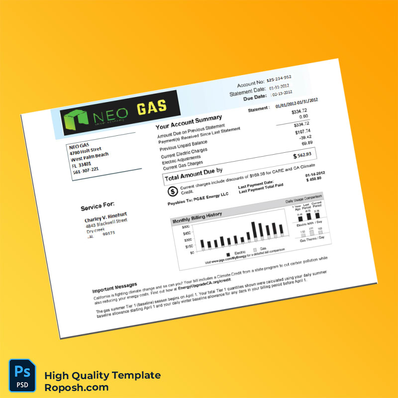 USA PG E Energy LLC Editable Utility Bill Template in Word and PDF Formats