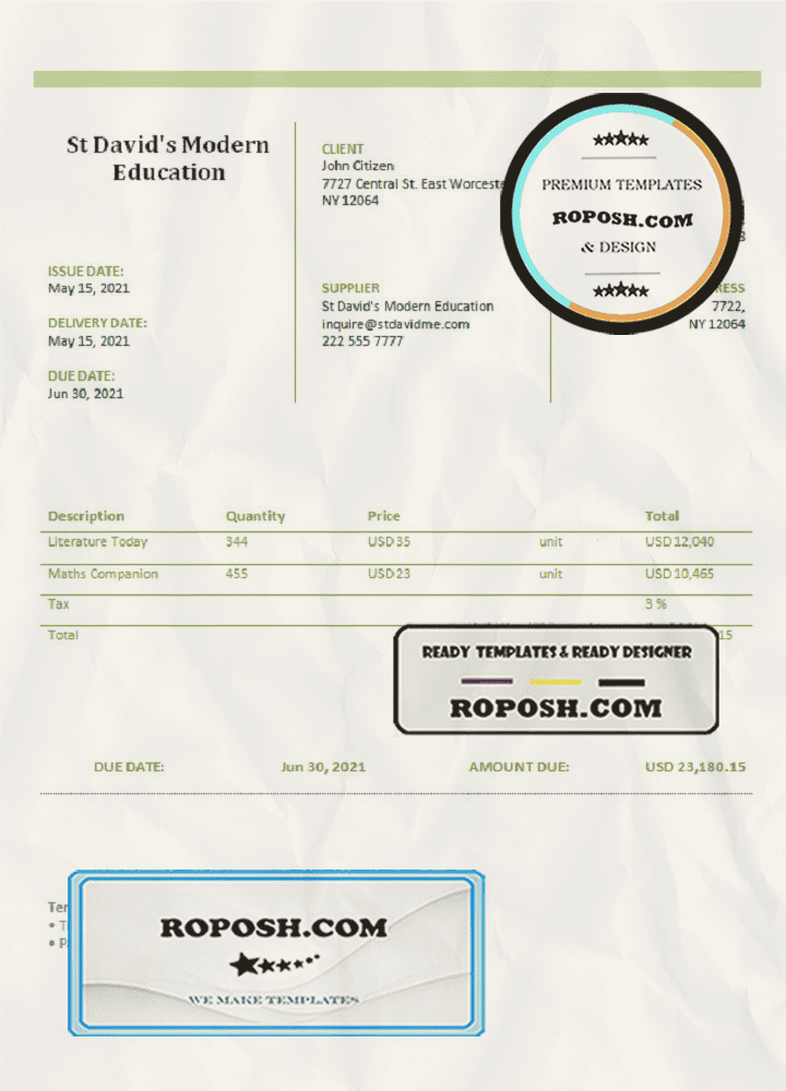 The Ultimate USA St David’s Modern Education invoice Template