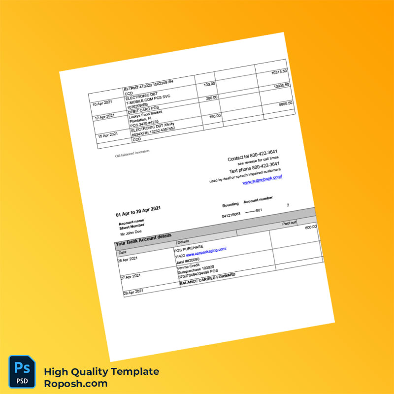 In today’s fast-paced world, losing a bank statement or needing a reliable replacement can lead to stress and delays. The USA Sutton Bank Statement Template is designed specifically for professionals who require a quick and seamless solution for their financial documentation needs.