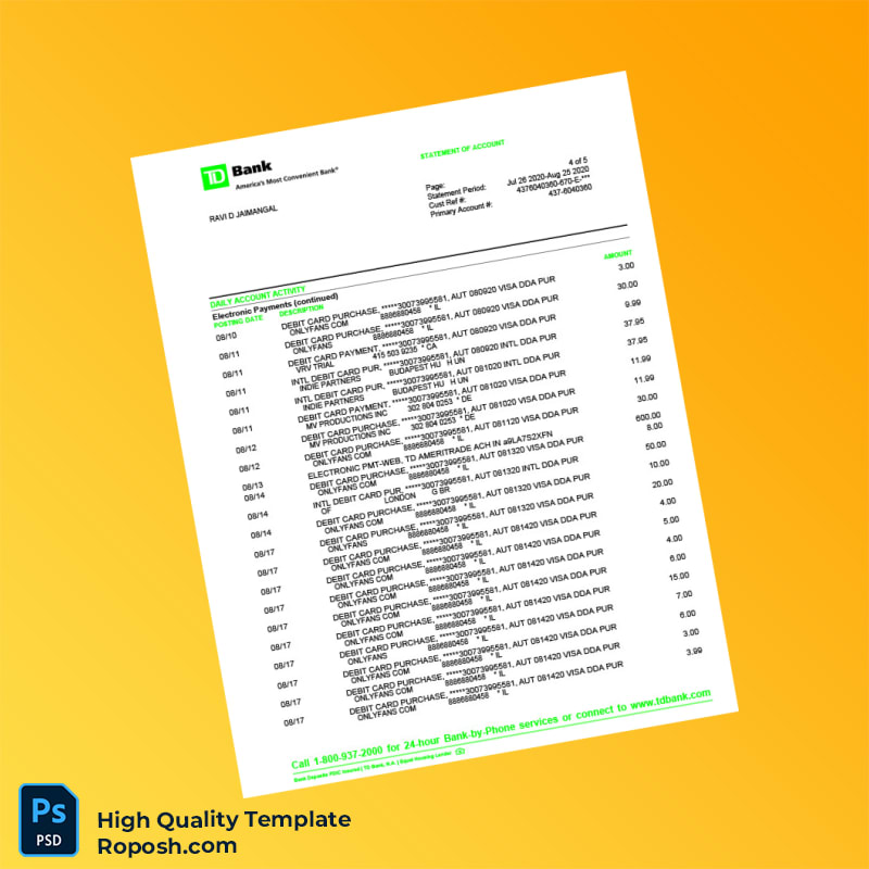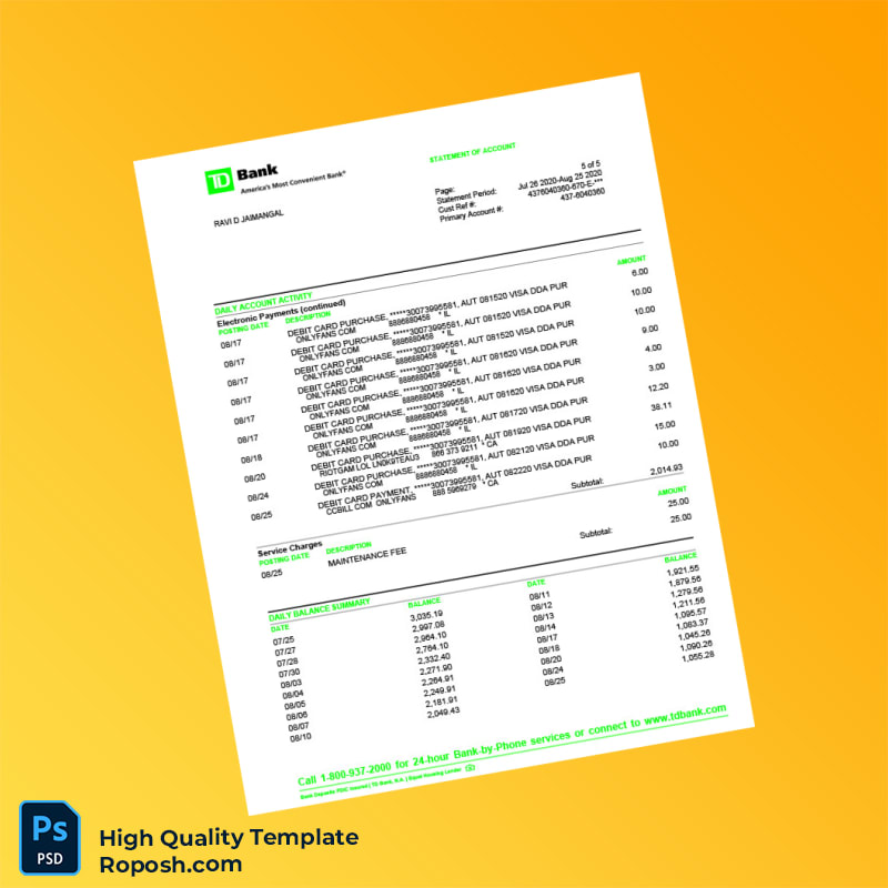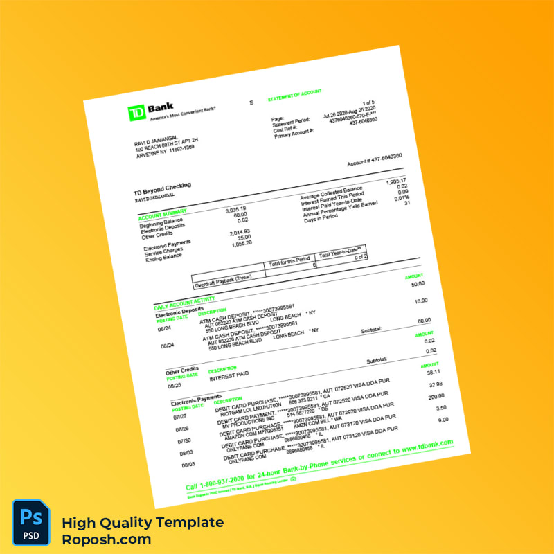 The USA TD Bank Statement Template in Word and PDF formats is expertly designed to meet the needs of professionals in a hurry. Whether you’ve lost an essential document, require a quick replacement, or simply need to customize your financial records, this template delivers a seamless solution.