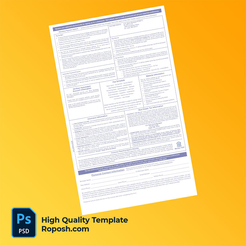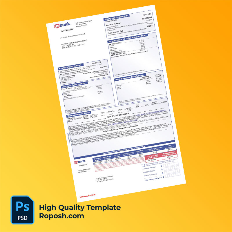 USA U.S. Bank Home Mortgage Editable Mortgage Statement Template in Word and PDF formats