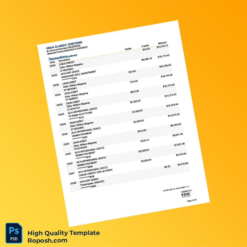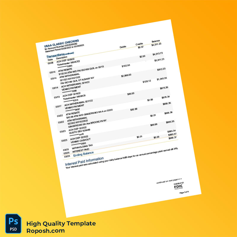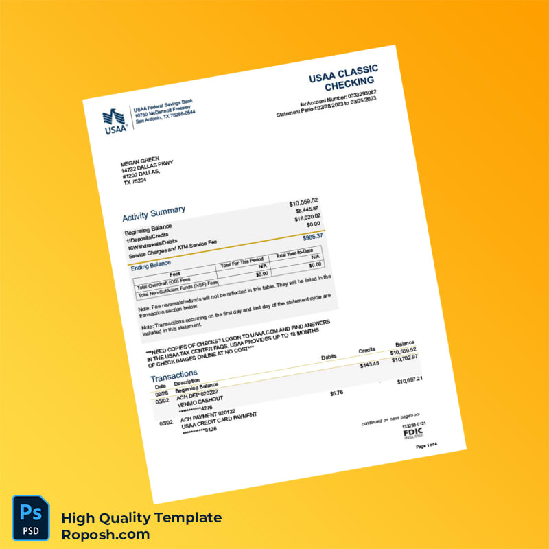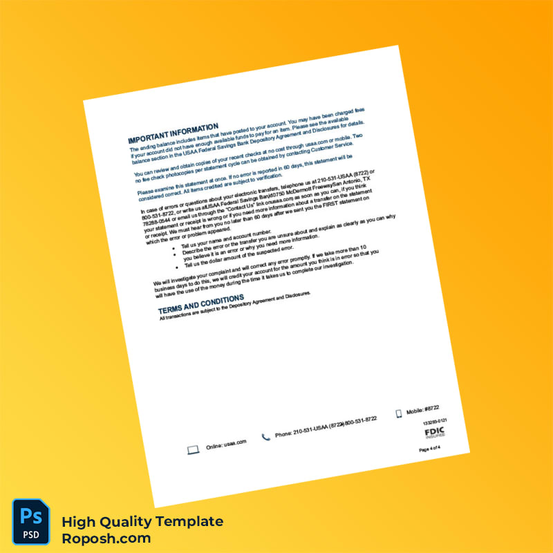 USA USAA Federal Savings Bank Bank Statement Template in Word and PDF Formats