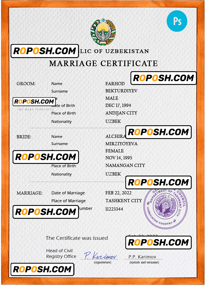– Join our growing list of satisfied customers today by getting your hands on our blank Uzbekistan marriage paper certificates.