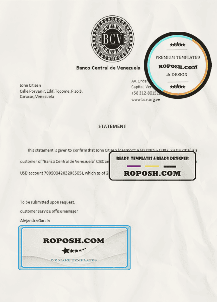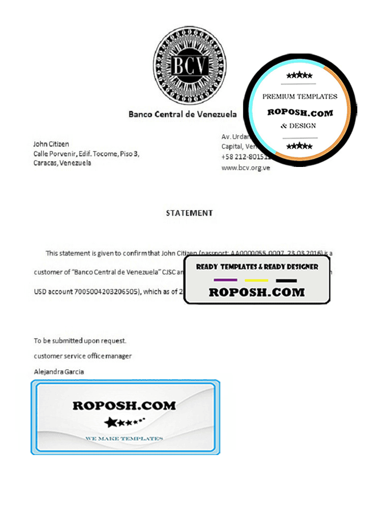 Venezuela Banco Central de Venezuela bank account closure reference letter template in Word and PDF format offer high-quality customizable bank reference form template in PSD and Word format, allowing you to easily fill in your personal details and make them look authentic. Our templates are perfect for online account verification, research, presentation, or work.