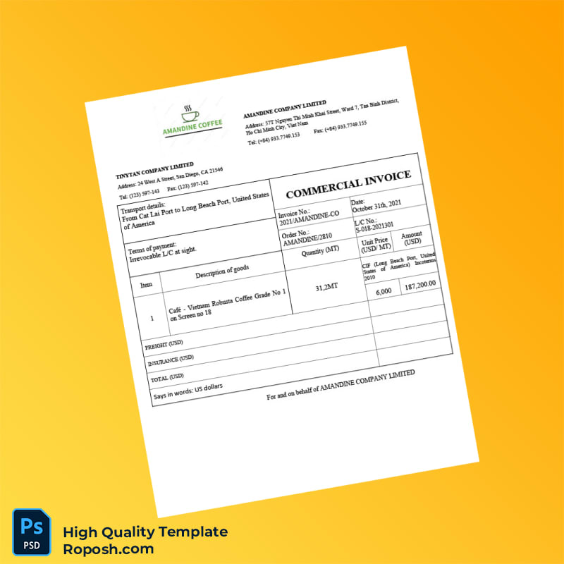 Professional Vietnam Amandine Company Limited Commercial Invoice Template in Word and PDF