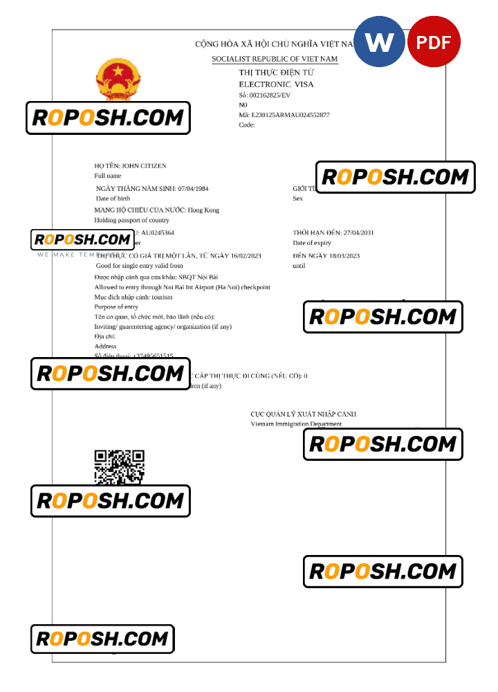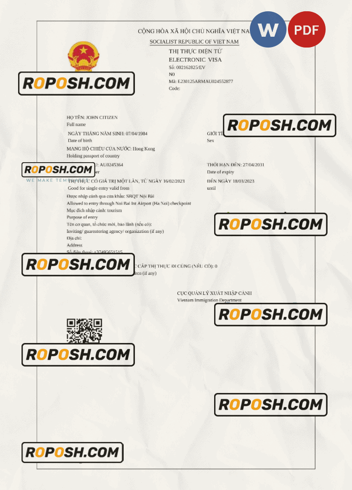 Vietnam electronic visa template psd. Buy Customizable Travel Visa Template with high quality and enjoy its unique features such as easy to customize, Layer based, fonts included sample. you can edit this template and put any name, address, license number, Id number, birth date, height, weight, expire date, change photos etc. This Photoshop template is a layer based psd file and it’s easy to Editing.To modify this photoshop template file you will need a Photo editing software such as Adobe Photoshop No need to be expert on editing software like adobe Photoshop. However, You just have to basic knowledge on adobe photoshop, to edit this template. Never used low quality template. Your account may be suspended. Also, if you’re looking for an editable SSN template, Roposh is by your side so you can get it easily and even for free.