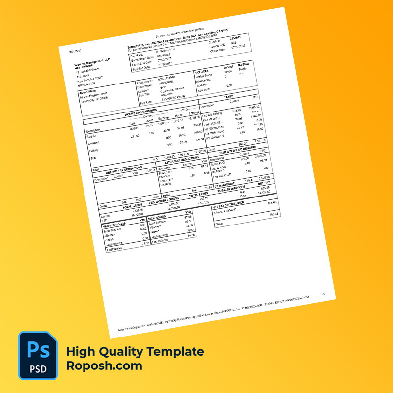 Be the first to review “WeWork Management LLC pay stub word and pdf template”