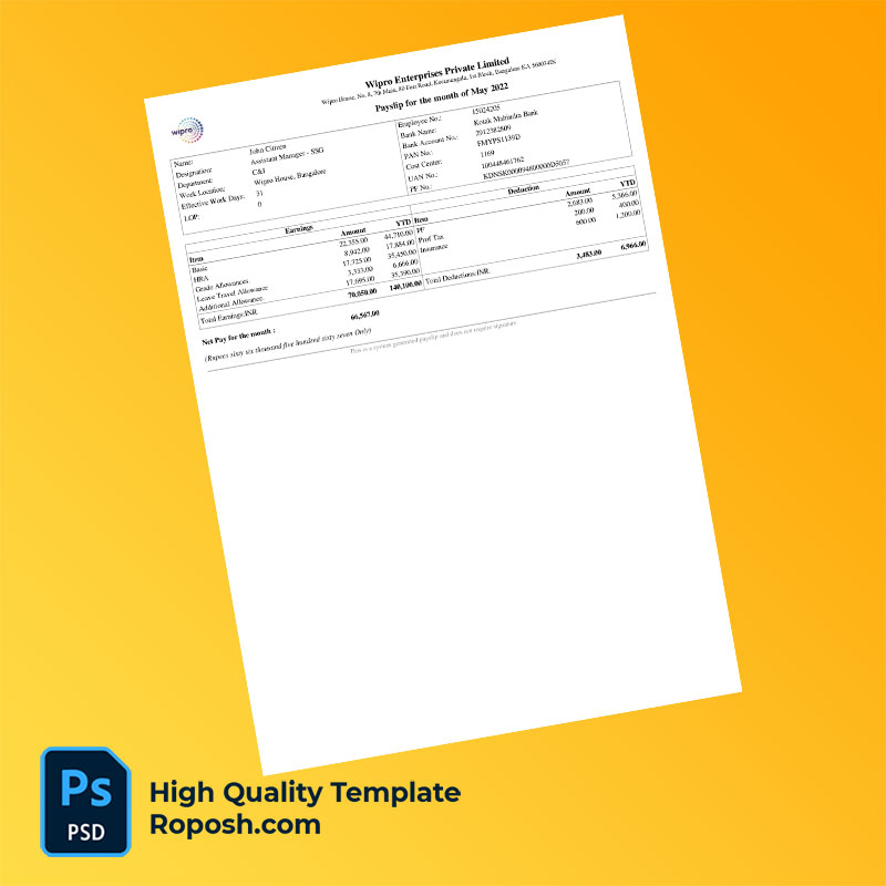 Be the first to review “Wipro Enterprises Private Limited payslip word and pdf template”