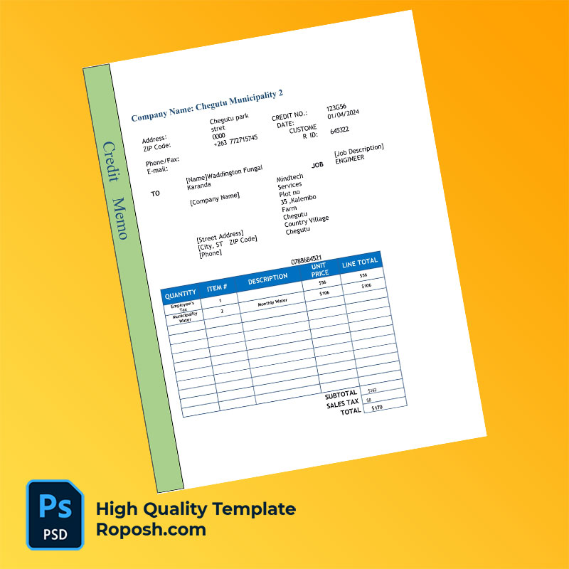 Be the first to review “Zimbabwe Chegutu Municipality Editable Credit Memo Template in Word and PDF formats”