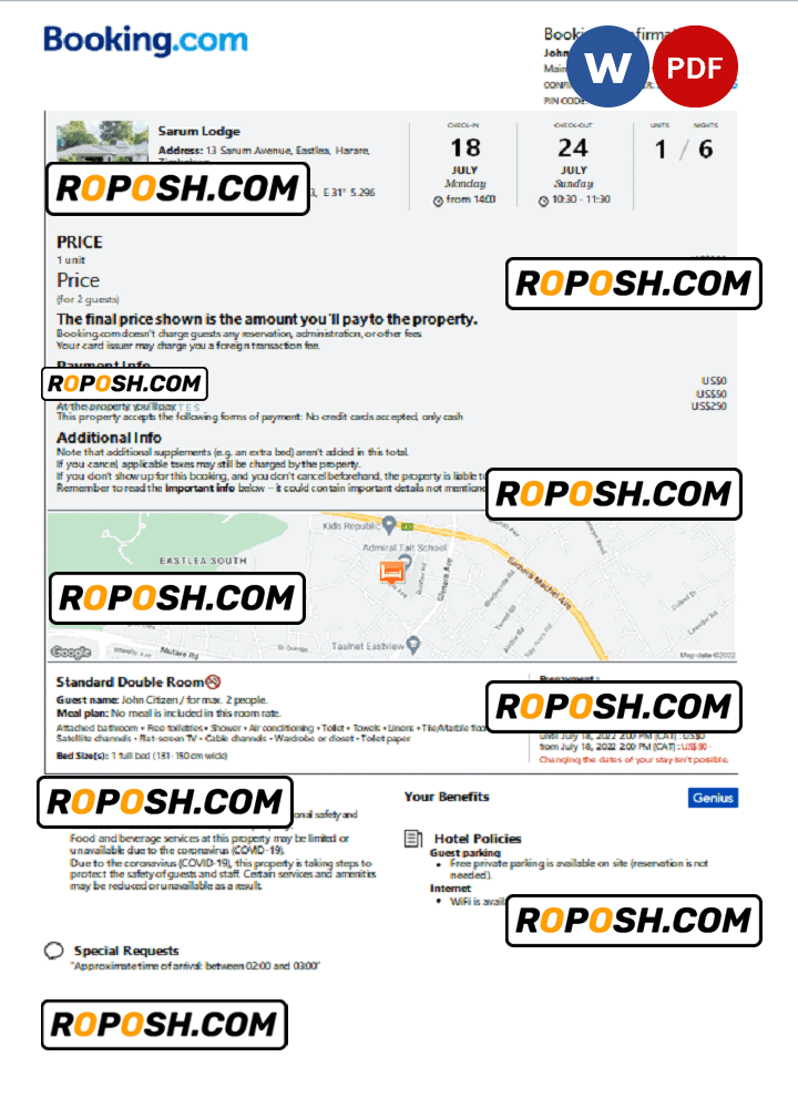 With its user-friendly design and flexible editing capabilities, this editable Zimbabwe hotel booking confirmation hotel, room, house, and Airbnb reservation proof is the perfect choice for anyone looking to create a professional-quality editable hotel accommodation reception. So why wait?